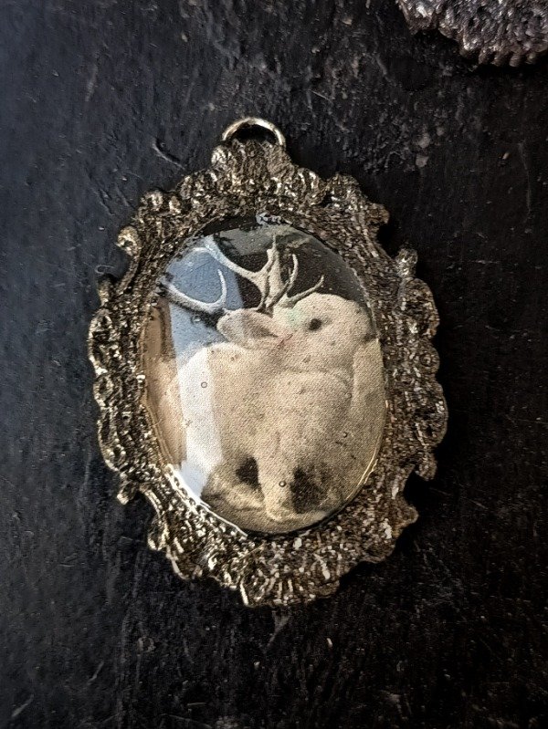Camafeo hecho a base de porcelana, barnizado con laca y resina