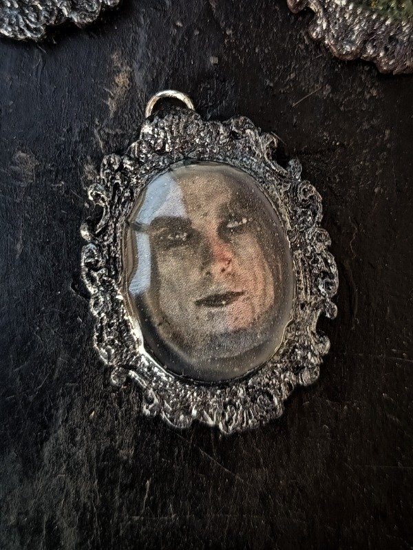 Camafeo hecho a base de porcelana, barnizado con laca y resina