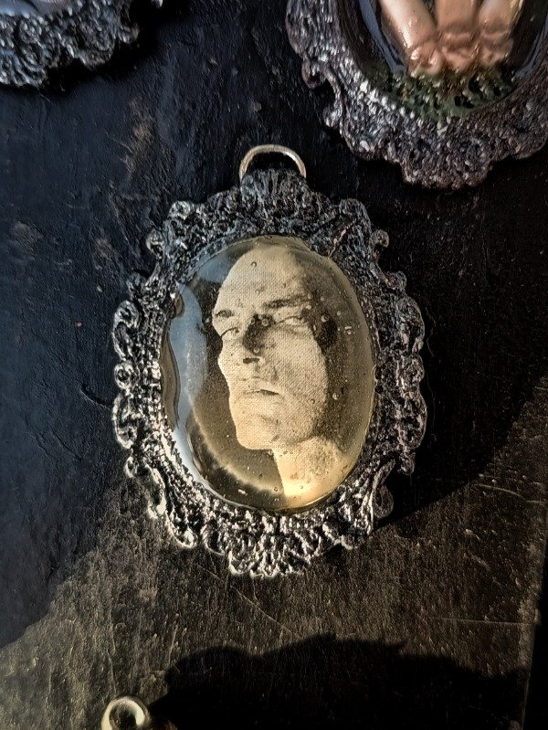 Camafeo hecho a base de porcelana, barnizado con laca y resina