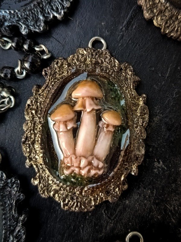 Camafeo hecho a base de porcelana, barnizado con laca y resina