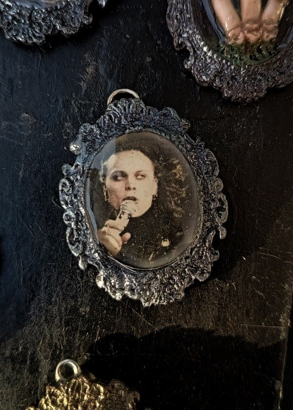 Camafeo hecho a base de porcelana, barnizado con laca y resina