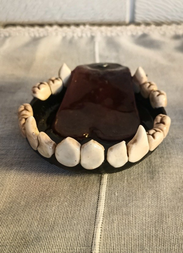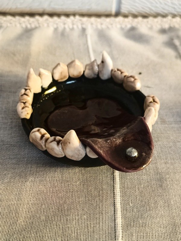 Cenicero hecho a base de porcelana fría moldelado a mano, barnizado con laca y resina
