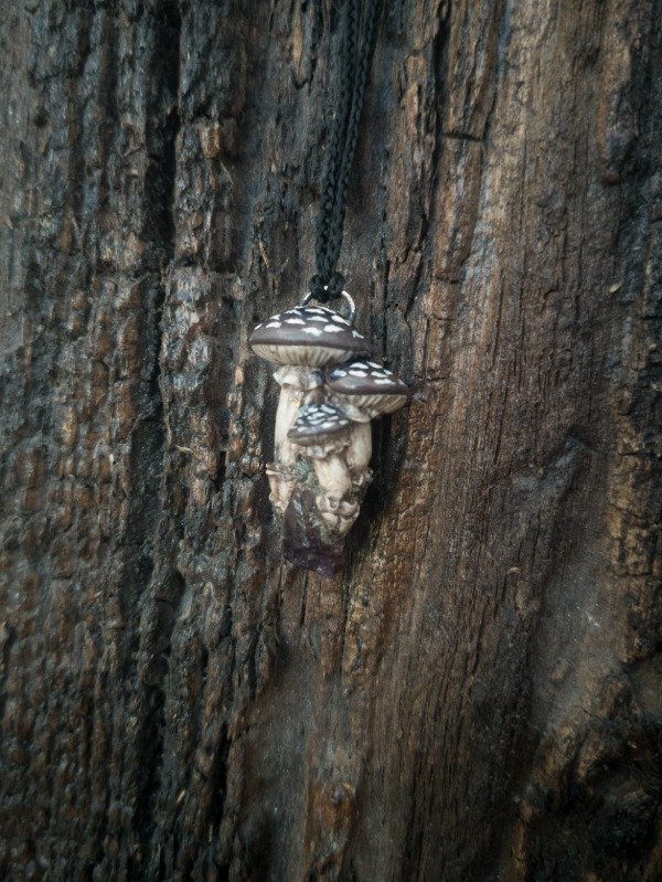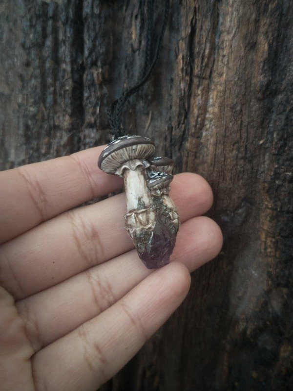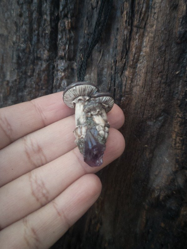 Setas modeladas sobre punta de amatista en bruto